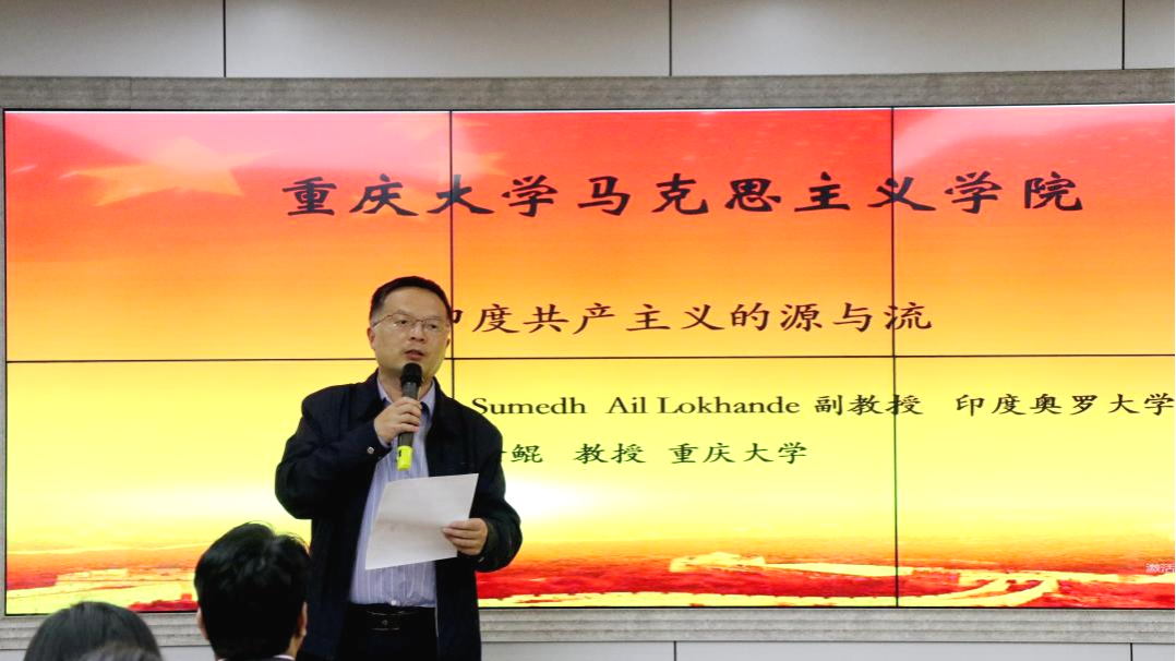 “红岩讲坛”第三十八讲在学院408室举行,印度奥罗大学Sumedh Ail Lokhande(聪利)副教授做客本次讲坛,作了题为“印度共产主义的源与流”的专题讲座。我院党委副书记袁利、副院长徐鲲、青年教师杨柠聪、陈瀚谕以及各年级研究生参加此次讲座,讲座由徐鲲主持。