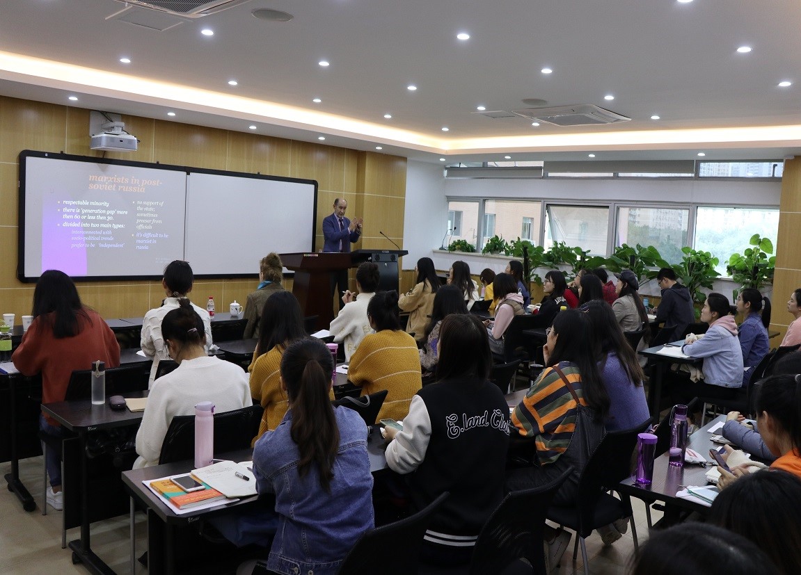 在答疑环节,布兹加林就“马克思主义研究的前景问题”与参会同学进行现场互动。讲座结束后,同学们表示,此次讲座反复对比了苏联式马克思主义和俄罗斯式马克思主义,引入了政治经济学、西方马克思主义问题域的新观点和新论述,为同学们进一步学习俄罗斯新马克思主义流派的思想主旨,了解后苏联批判的马克思主义学派指明了方向。